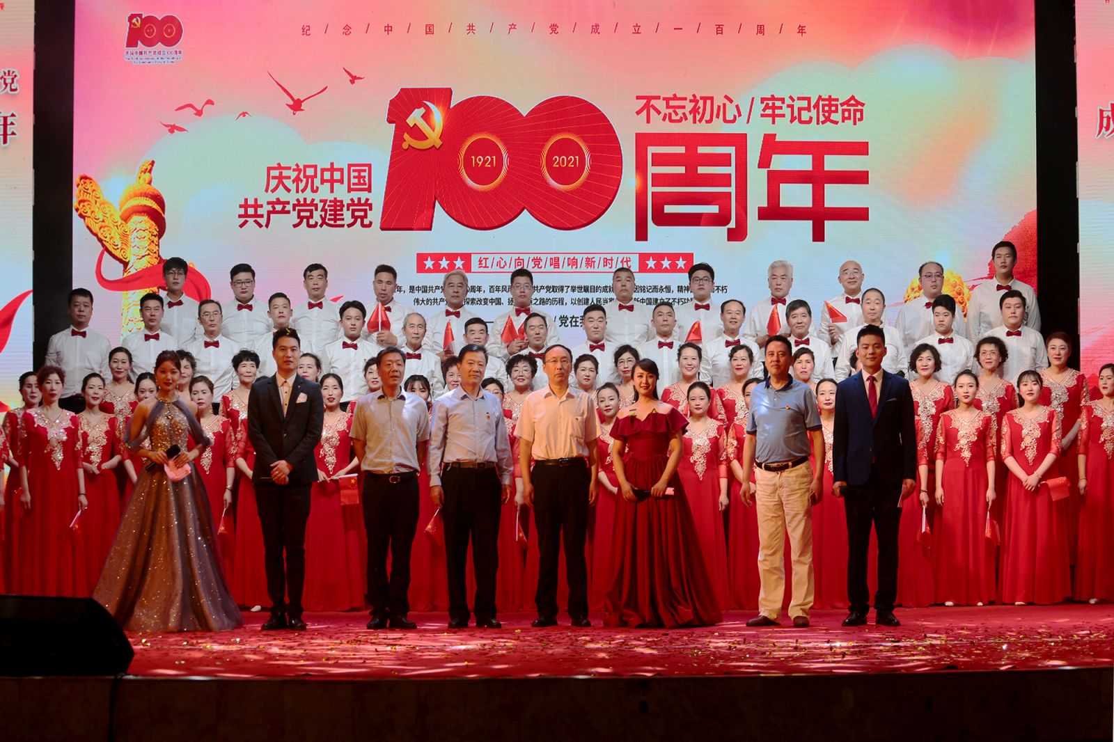 隨后,精彩的文藝匯演展開。舞蹈《南湖的船黨的搖籃》生動再現(xiàn)了黨的一大召開的場景;歌曲聯(lián)唱《歌唱祖國》《紅旗飄飄》《陽光路上》抒發(fā)了濃濃的愛國情懷以及對黨的深深祝福;詩朗誦《沁園春·雪》通過激昂的旋律、磅礴的氣勢,仿佛帶領(lǐng)觀眾回到了那個戰(zhàn)火紛飛的年代,看到了那個指點(diǎn)江山的偉人……最后,在全體齊唱《沒有共產(chǎn)黨就沒有新中國》的旋律中,我公司“慶祝建黨100周年文藝匯演”圓滿結(jié)束。